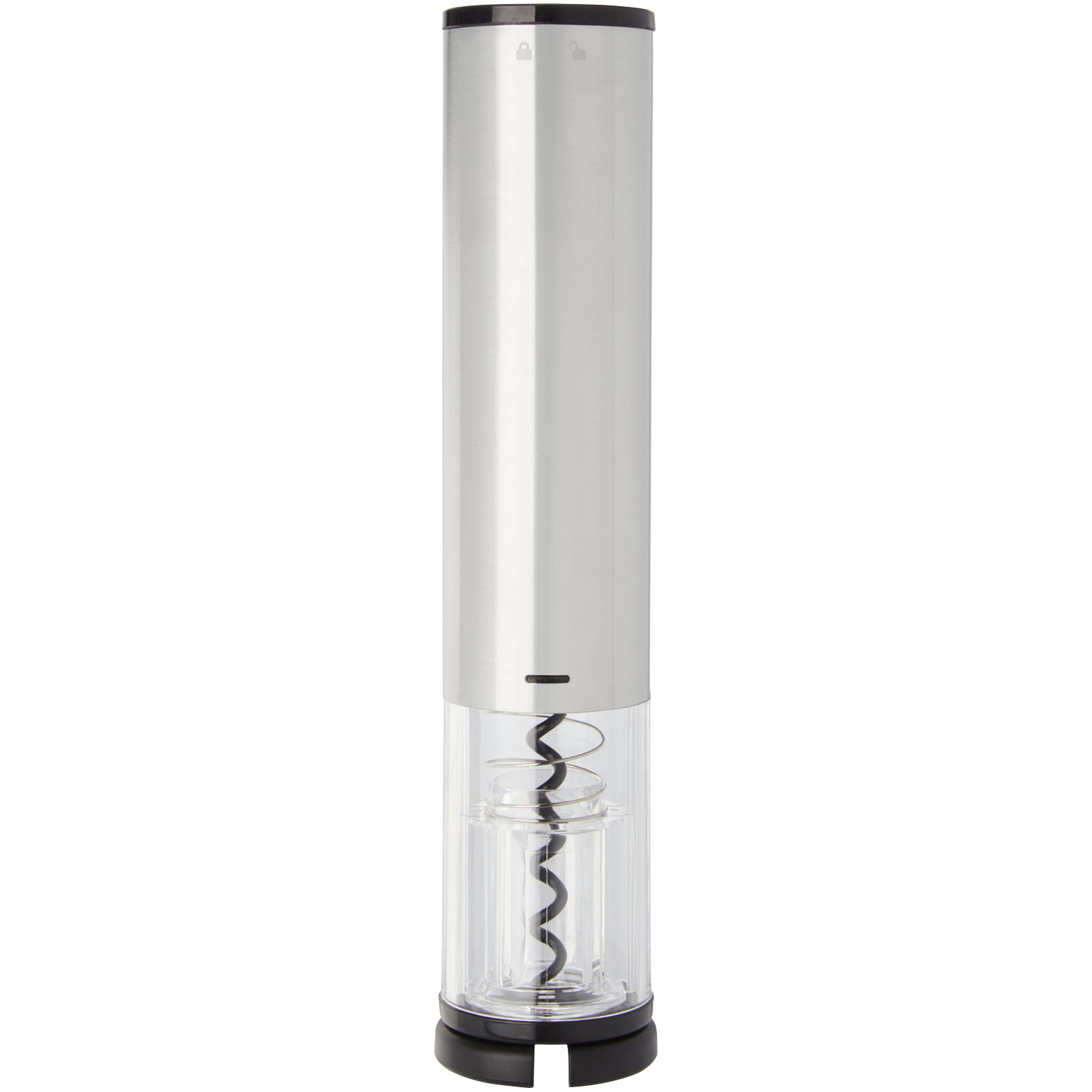 Abridor eléctrico para botellas de vino con un cortacápsulas, un decantador y un tapón. Funciona con 4 pilas AA (no incluidas).