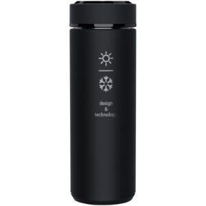 Bidón de aluminio de una sola pared con tapa de rosca y boquilla con tapa Flip para beber. La tapa lleva un asa para facilitar su transporte. Sin BPA. Capacidad de 800 ml.