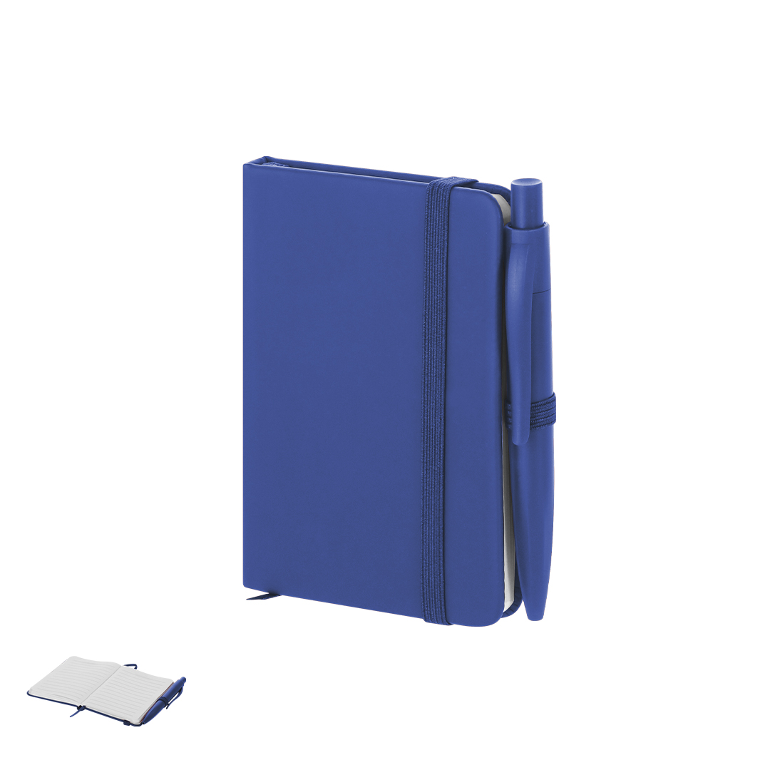 [extendedinfo] => Bloc de notas con tapas rígidas en PU. Incluye 80 hojas en disposición de una raya, elástico de sujeción, marcapáginas de tela y bolígrafo a juego.