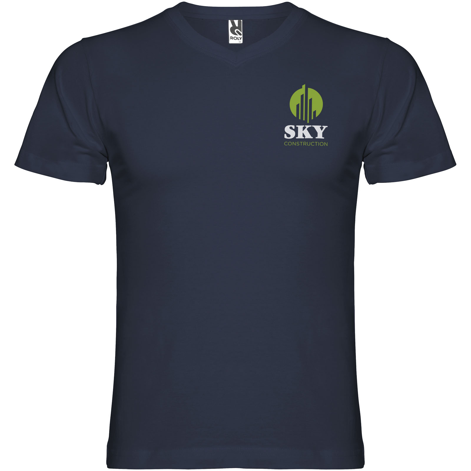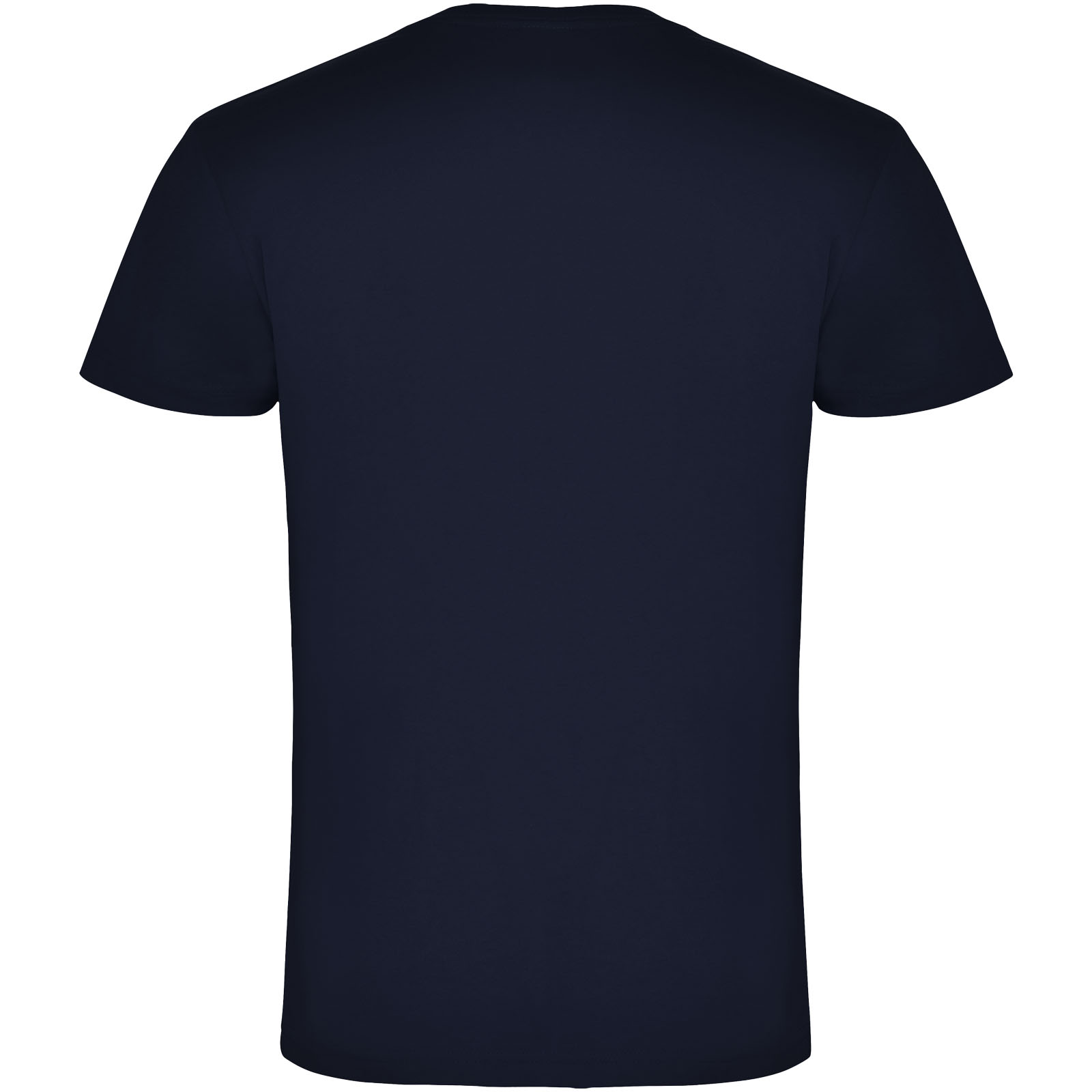 Camiseta de manga corta tubular y cuello en pico de 2 capas. Cubrecosturas reforzado en cuello y hombros. Etiqueta extraíble. El modelo mide 190 cms y lleva la talla L.