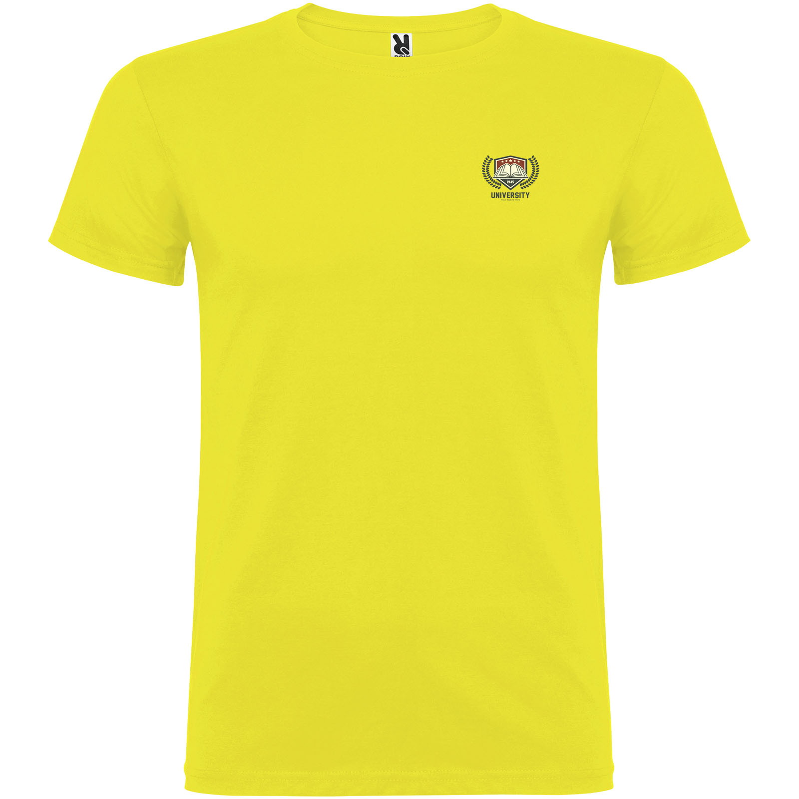 Camiseta de manga corta de cuello redondo doble con elastano, confeccionada en tejido tubular y cubrecosturas reforzado en cuello. Etiqueta extraíble. El modelo mide 120 cms y lleva la talla 5/6.