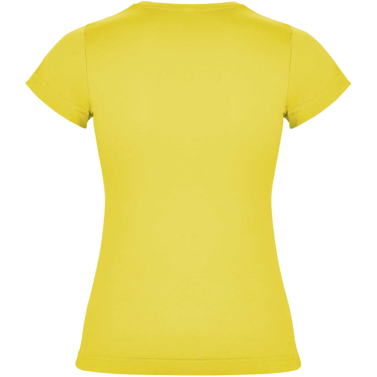 Camiseta de manga corta entallada. Cuello redondo de dos capas en canalé 1x1 con cubrecosturas de hombro a hombro. Costuras laterales. Camiseta disponible en 21 colores. Etiqueta removible. La modelo mide 168 cms y lleva la talla S.