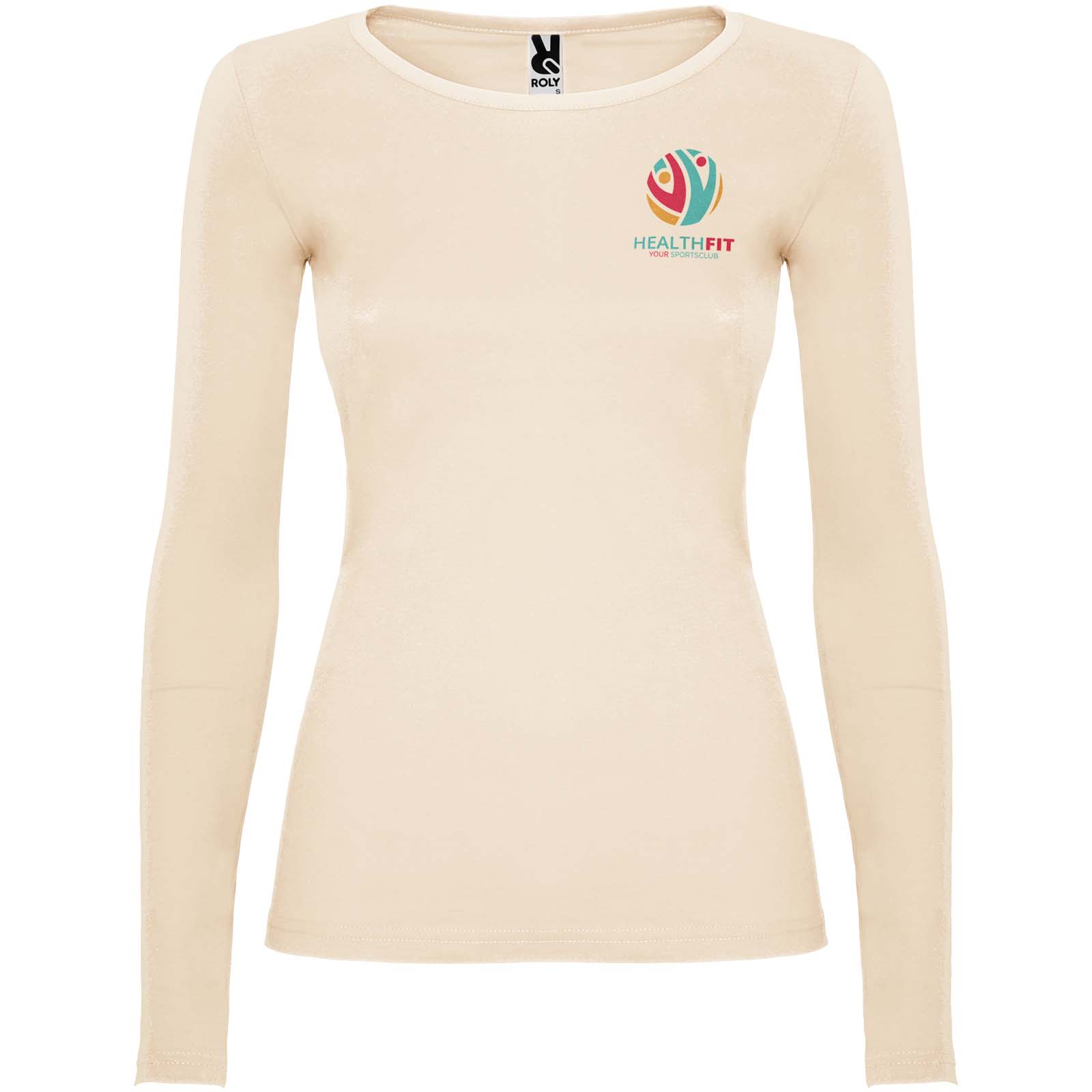 Camiseta semientallada, de manga larga y cuello acabado con ribete fino. Sin puños. Costuras laterales. Etiqueta extraíble.