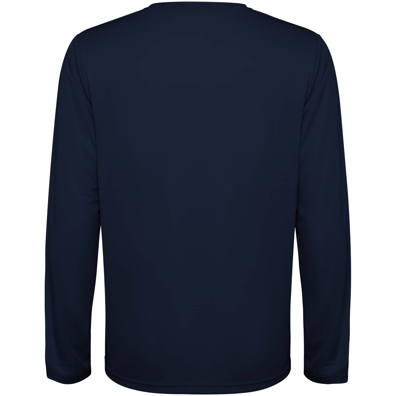 Camiseta técnica de manga larga unisex. Cuello con costuras a juego. Dobladillo trasero ligeramente más largo que el delantero. Costuras laterales desplazadas hacia delante.