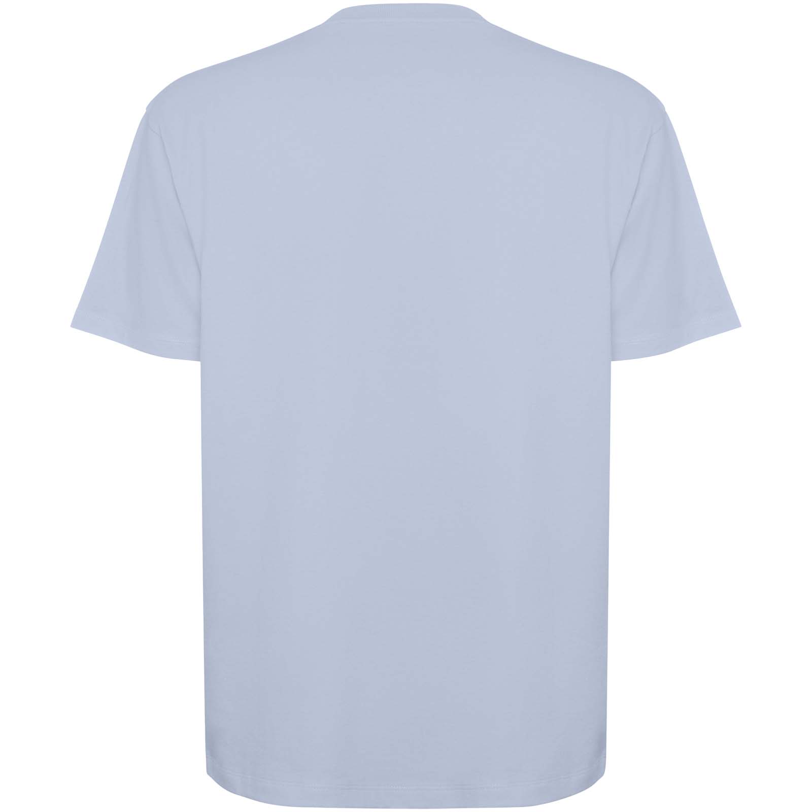 Camiseta holgada de manga corta. Cuello redondo ribeteado en canalé 2x1 con cubre costuras a juego. Costuras laterales. Doble costura ancha en las mangas y el dobladillo. Etiqueta extraíble.