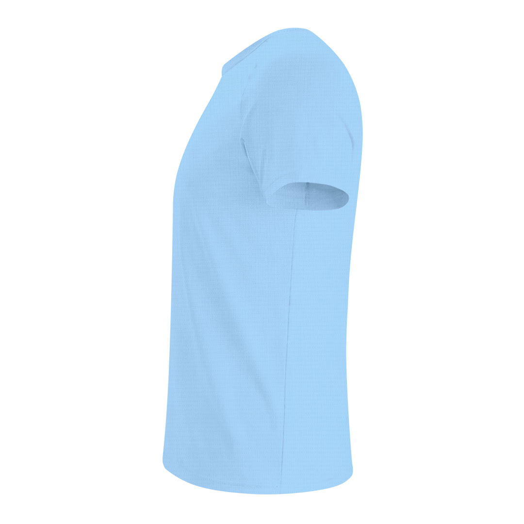 Camiseta técnica infantil de manga corta ranglán, confeccionada en tejido 100% poliéster waffle interlock, incorpora tecnología Cool Dry, que favorece la transpiración y el secado rápido. Diseño con mangas ranglán y costuras overlock en sisa y mangas. Cuello y cubrecosturas a tono.