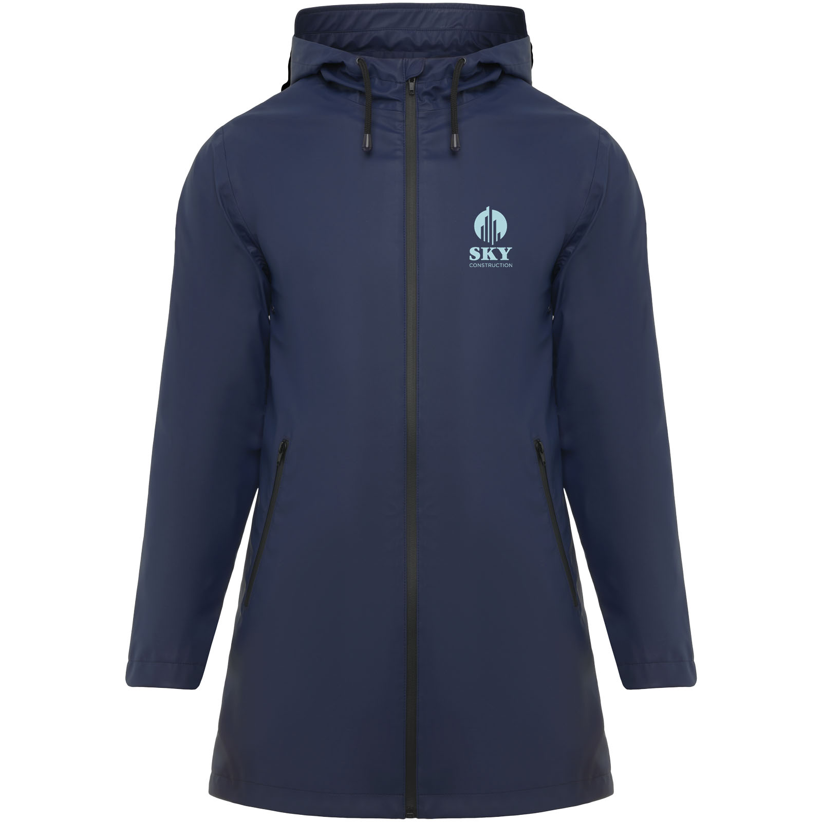 Chubasquero impermeable entallado para mujer. Capucha con visera. Cremalleras y costuras termoselladas. Detalles a contraste en color negro. Dos bolsillos laterales con cremallera. Bajo posterior con abertura. Etiqueta extraíble. Modelo impermeable. La modelo mide 179 cms y lleva la talla S.