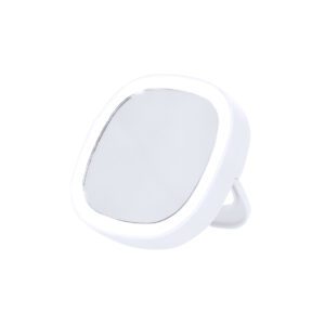 Espejo plegable con cubiertas en suave PU. Diseñado con soporte ajustable en tres posiciones. Con aumento 1x.