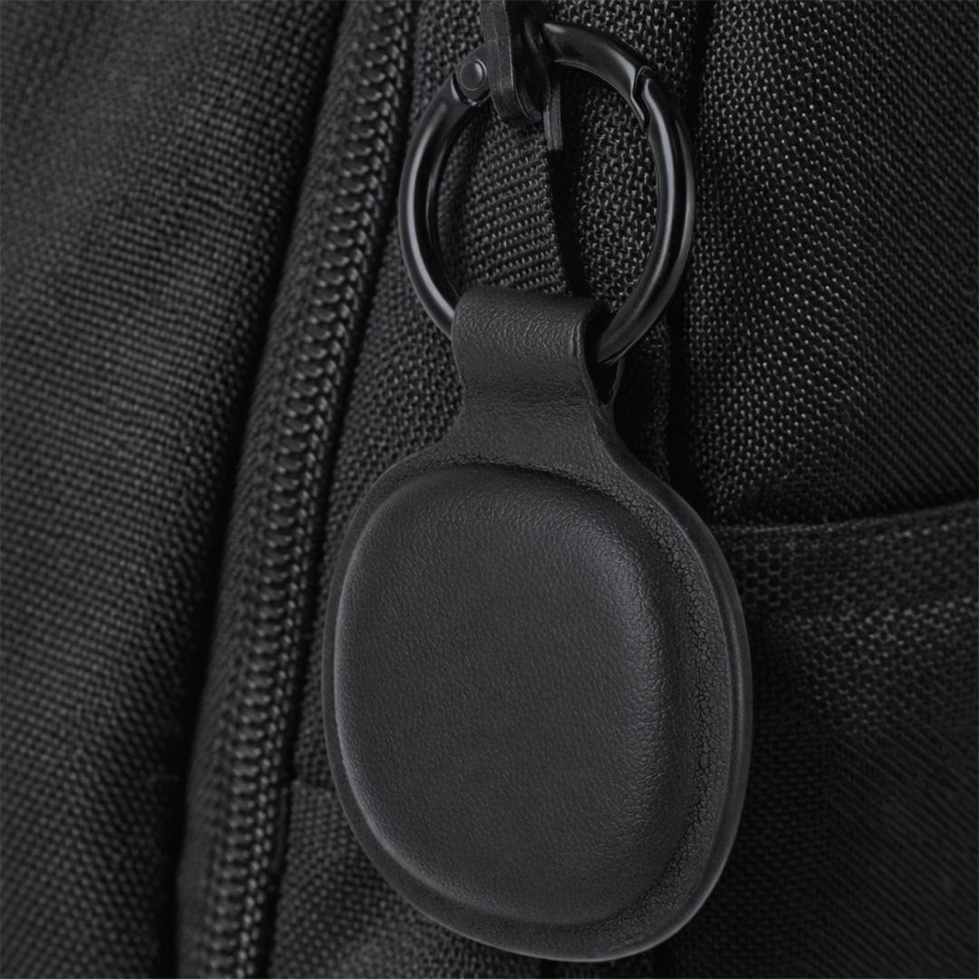 Localizador inteligente con elegante diseño en PU.Con sistema de conexión dual, compatible con Apple Find My y Android Find Hub, el cual te permite rastrear tus pertenencias en tiempo real, de forma rápida y precisa. Incluye una anilla metálica en elegante negro cromado. Pila de botón incluida.