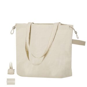 Petate multiusos de línea nature y diseño bicolor. Fabricado en yute, con detalles en algodón. Con cinta ajustable y bolsillo interior. Compartimento principal con argollas metálicas reforzadas y bolsillo frontal para fácil marcaje.