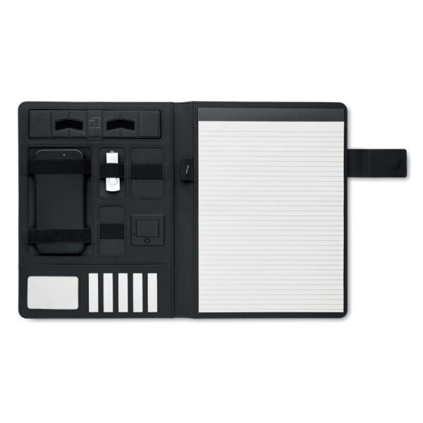 [extendedinfo] => Portadocumentos A4 con funda de lino-PU. Power bank de 5000 mAh y cargador inalámbrico magnético de 15W. Bloc de notas de 20 hojas rayadas. Múltiples compartimentos internos. Cierre magnético. Portabolígrafos elástico.