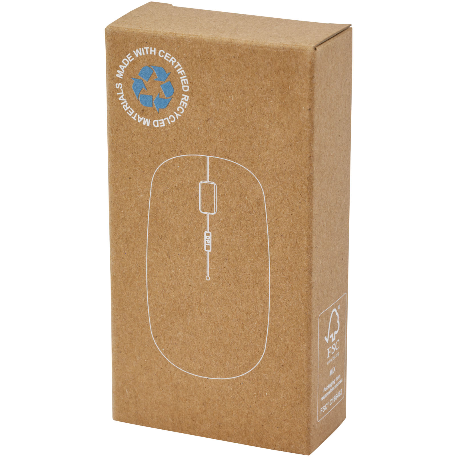 Este elegante y llamativo ratón óptico de 4 botones se ha fabricado en plástico reciclado e incluye un receptor USB para conexión inalámbrica por radiofrecuencia y función especial de PPP (800/1200/1600 PPP). El botón PPP permite cambiar rápidamente la sensibilidad del ratón, lo que resulta muy práctico durante el juego. Necesita 2 pilas AAA (no incluidas). Compatible con los sistemas operativos Windows y Mac. Se entrega en una caja de papel kraft.