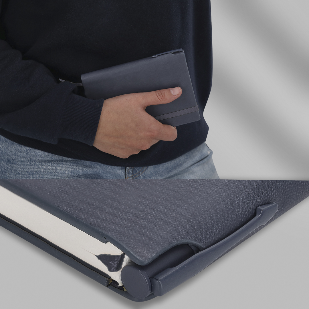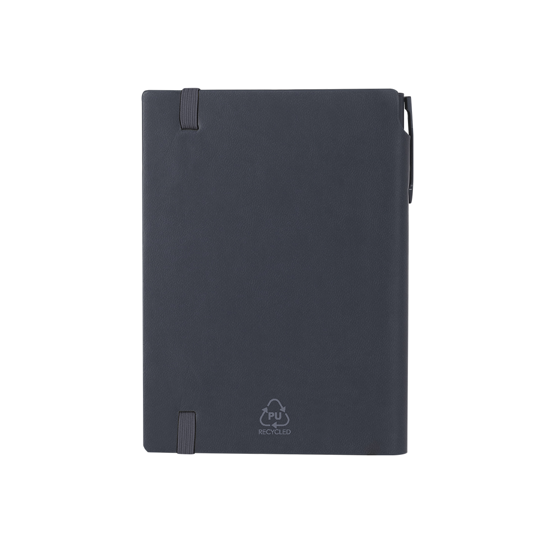 Bloc PU Reciclada. Portada Rígida. 96 Hojas. Bolígrafo Aluminio Reciclado. Acabado Caucho