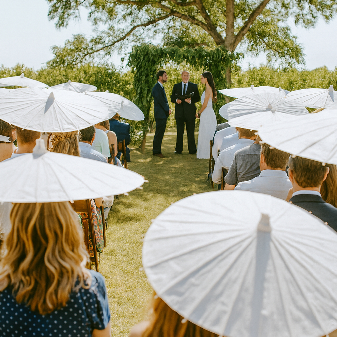 Original sombrilla de madera y tela en papel. Con mango en madera natural en acabado brillante. Sistema de apertura y cierre manual, con diámetro de 58 cm las varillas están fabricadas en madera. Ideal para eventos al aire libre.Elaborado con elementos vegetales para así fomentar la utilización de materias primas naturales y reducir las emisiones contaminantes.